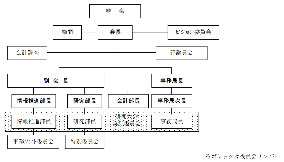 第10条 役員会は、会長・副会長・事務局長・事務局次長・会計部長・研究部長・情報推進部長で構成し、会長が招集する。